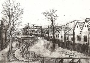 Ранній твір Павла Лопати. Краєвид рідного села Калинів, олівець на папері (1963).