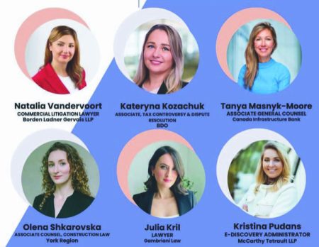 У дискусії взяли участь: Наталія Вендервурт, адвокатка з комерційних судових спорів у Borden Ladner Gervais LLP; Катерина Козачук, юристка з податкових спорів та врегулювання податкових конфліктів у BDO; Таня Масник-Мур, заступниця генерального юрисконсульта в Canada Infrastructure Bank; Олена Шкаровська — юрисконсульт з питань будівельного права в York Region; Юлія Кріль, адвокатка у Gambriani Law; а також Христина Пуданс, адміністраторка електронного розкриття доказів (E-Discovery) у McCarthy Tétrault LLP. Учасниці поділилися власним професійним досвідом, розповіли про свій кар’єрний шлях та обговорили роль жінок у сучасній правничій професії.